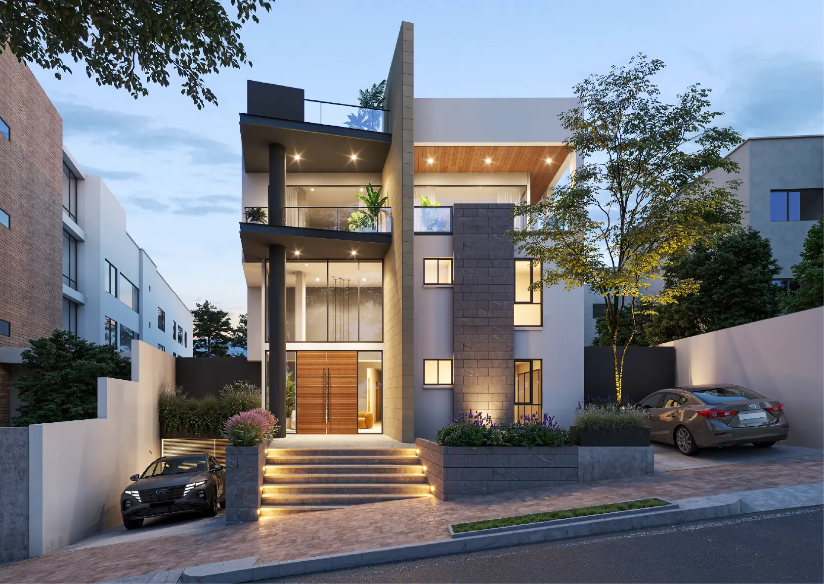Exclusivo proyecto residencial de 3 plantas que fusiona confort y elegancia con un estilo contemporáneo y minimalista.