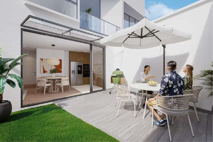 Amplias viviendas de dos plantas con generosos balcones y patios. Ideales para familias que buscan espacio y privacidad. 4 dormitorios, 4.5 baños y 2 parqueaderos.